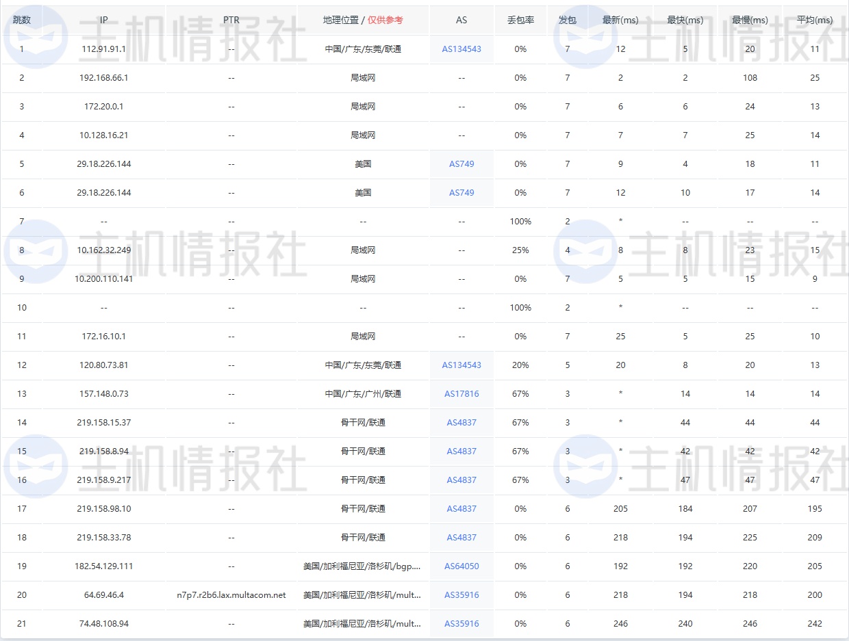 回程详细路由检测: