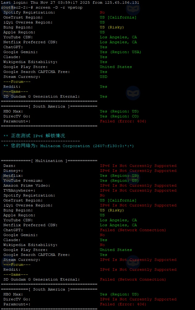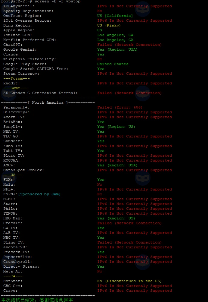 流媒体解锁能力检测
