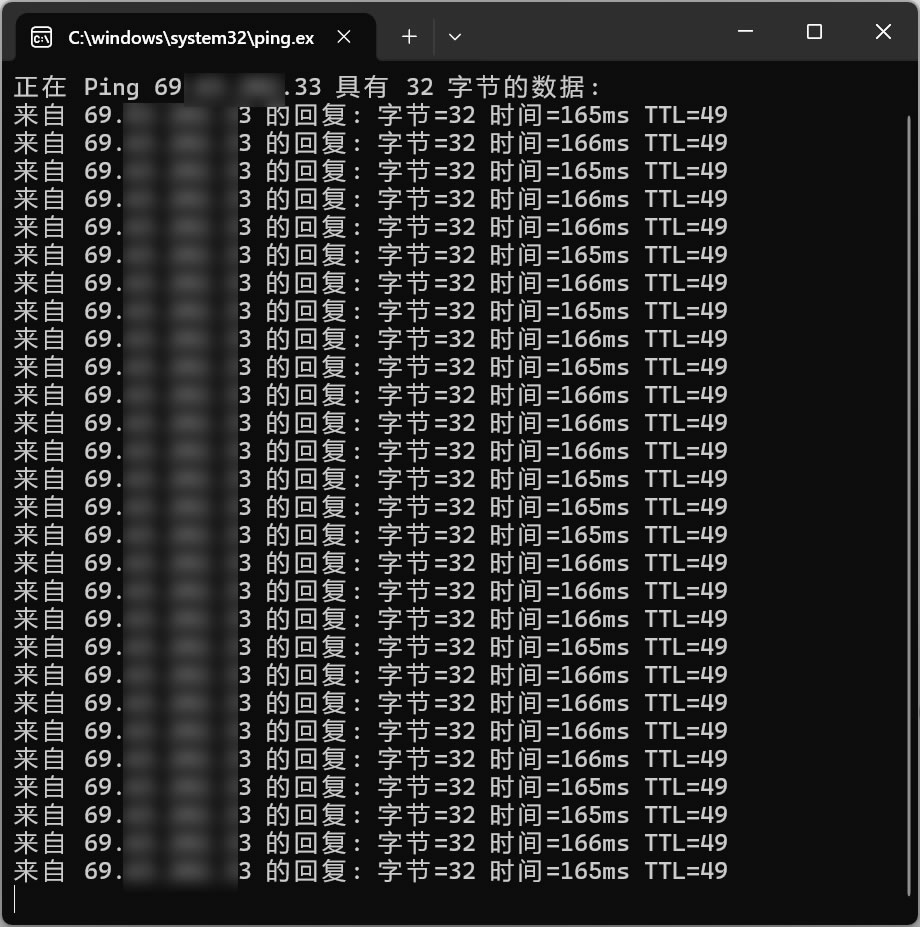 本地ping的情况如下,四川电信ping基本上165ms左右: