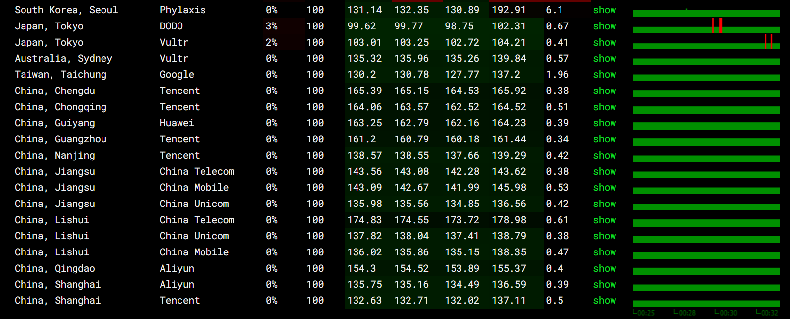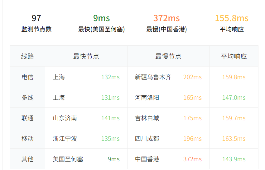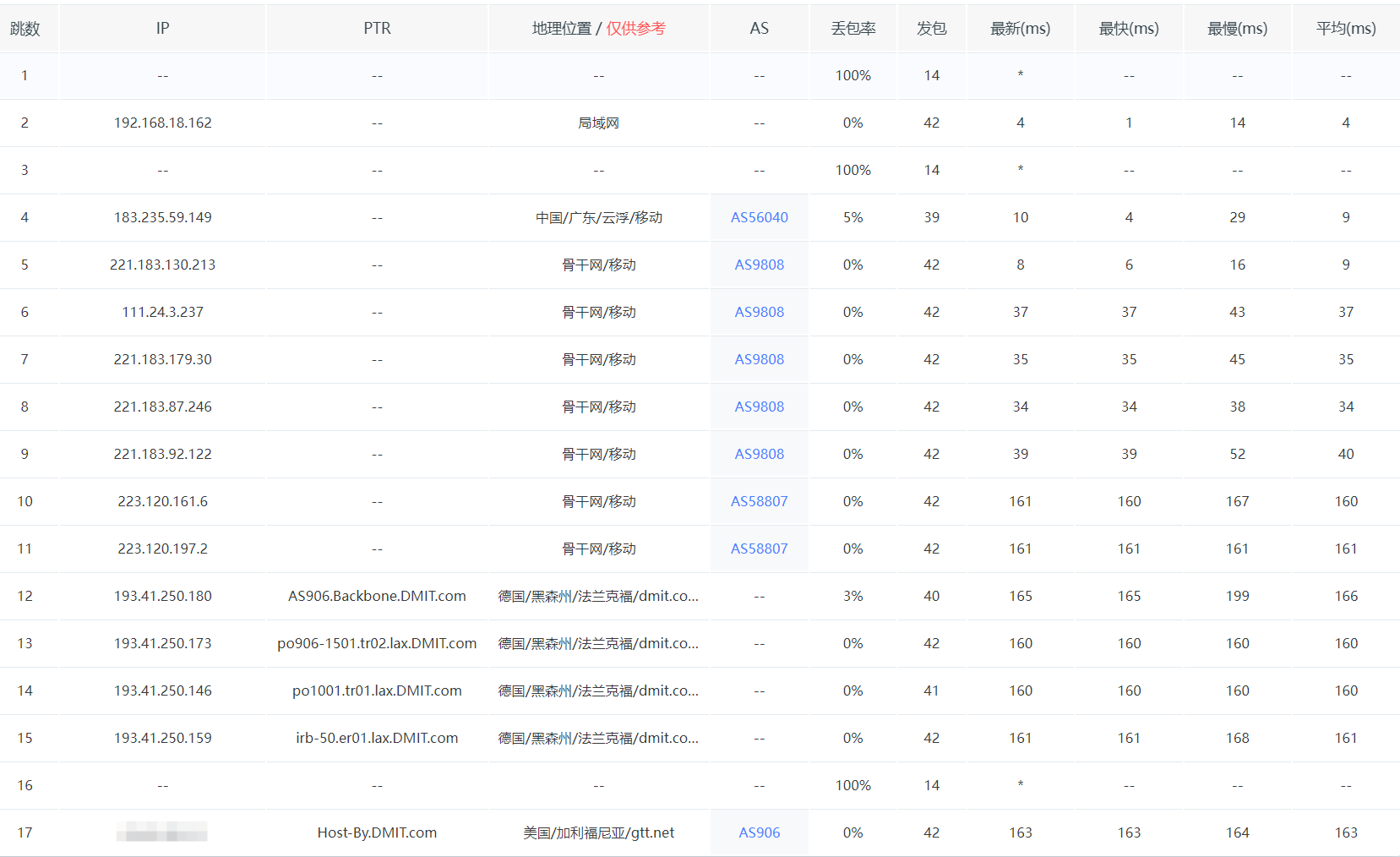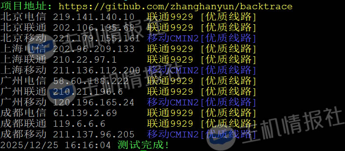 回程线路看一下,先看简单粗暴的一键测三网回程: