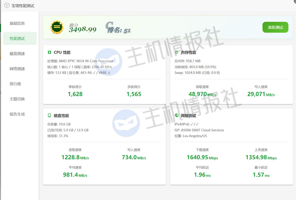 下面用宝塔面板中的宝塔性能测试再测一遍: