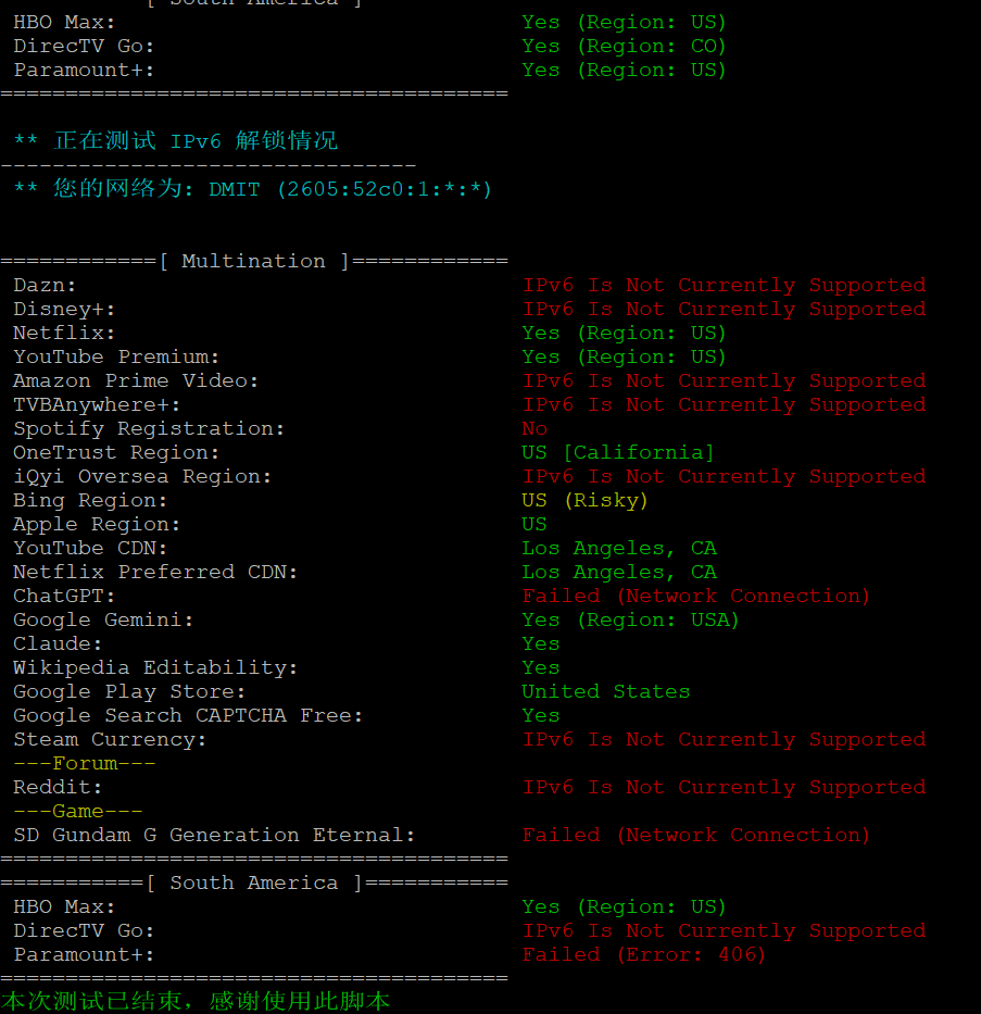 流媒体解锁检测情况如下: