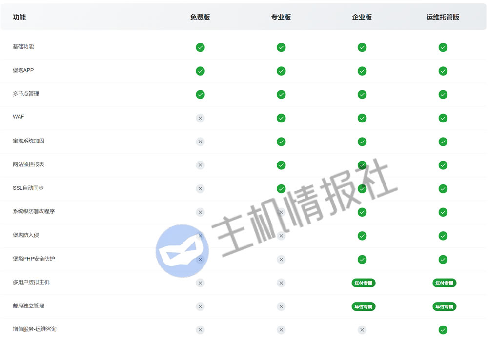 价格:宝塔正价不便宜,需要¥699/年。不过双十一、程序员运维节等,会有活动,到时候会便宜不少。不过对于社长来说依然太贵了,社长有多台服务器(100来台),如果全部付费购买装上宝塔的话,那每年的面板授权费将是一个天文数字。