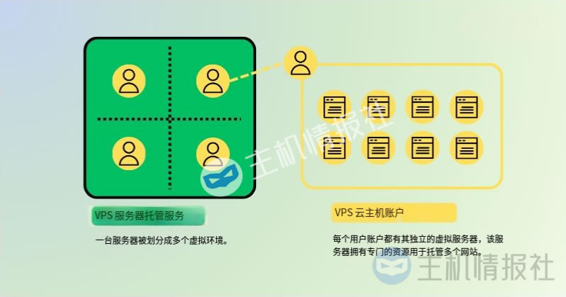 | VPS主机 | 服务器被划分为多个虚拟切片。每个账户都有专用资源。 |