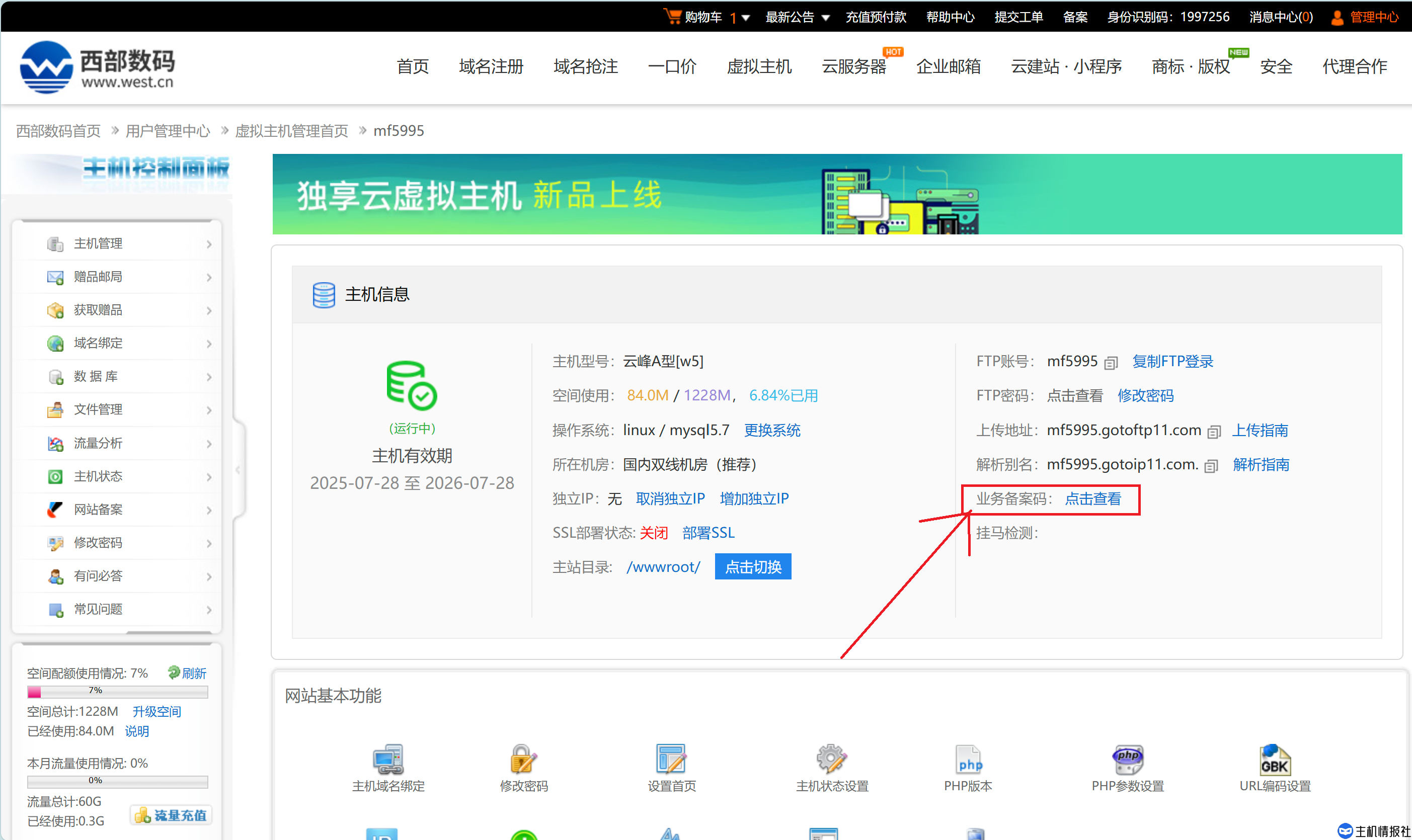 注册、登录成功以后,我们需要购买域名和虚拟主机,西部数码经常会有购买主机送域名活动,我没用过,所以这一点大家可以咨询客服。